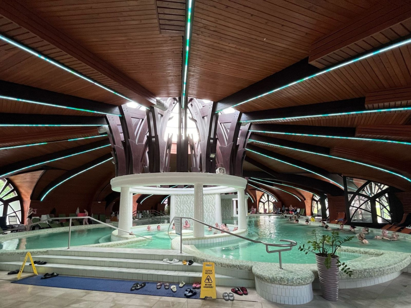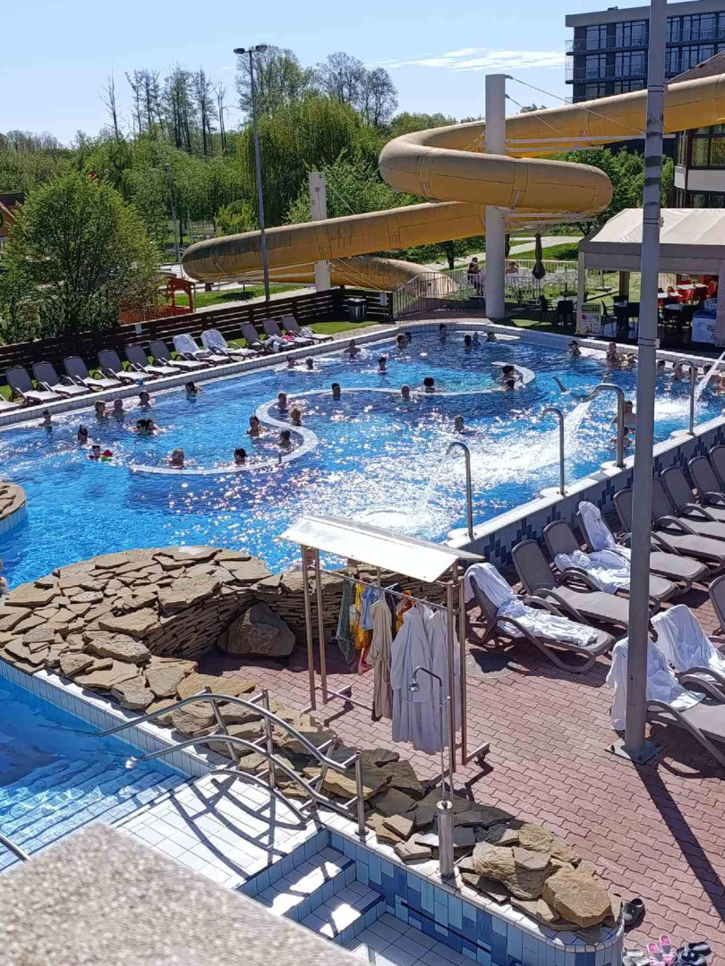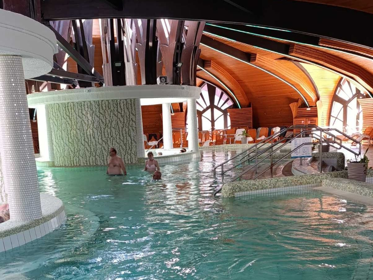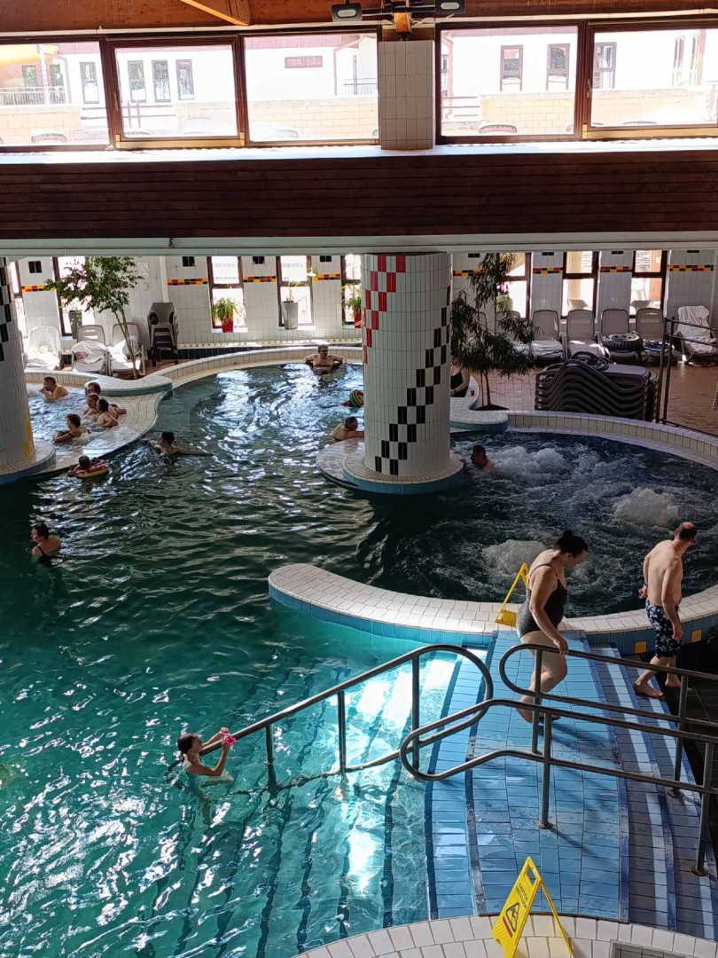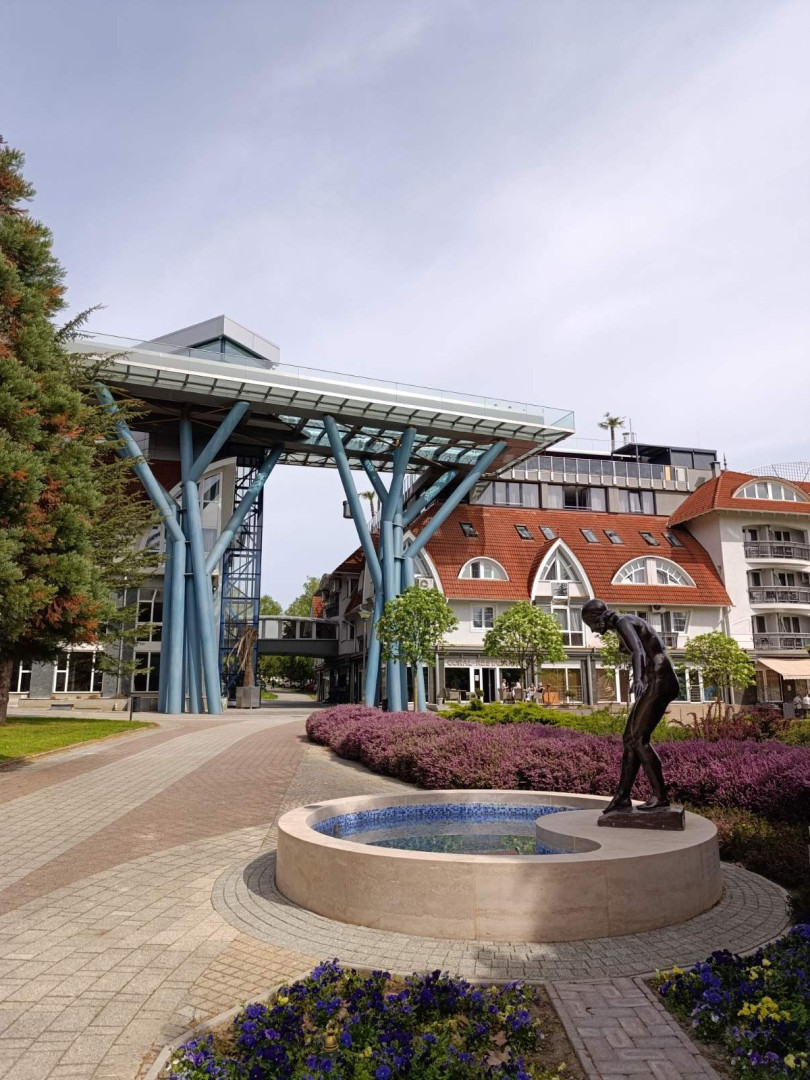 Malebné městečko Zalakaros s krásně kvetoucími parky a hlavně moderním lázeňským areálem, který je spojený s hotelem chodbou.
